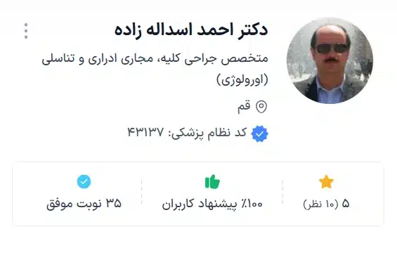 - تخصص: متخصص اورولوژی (جراحی مجاری ادراری و تناسلی)